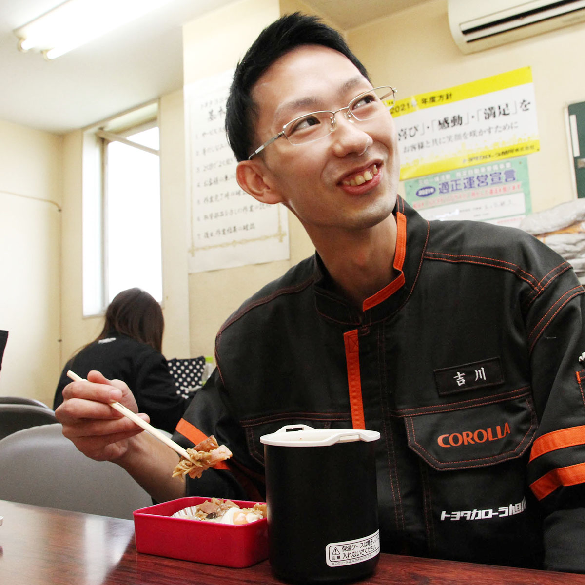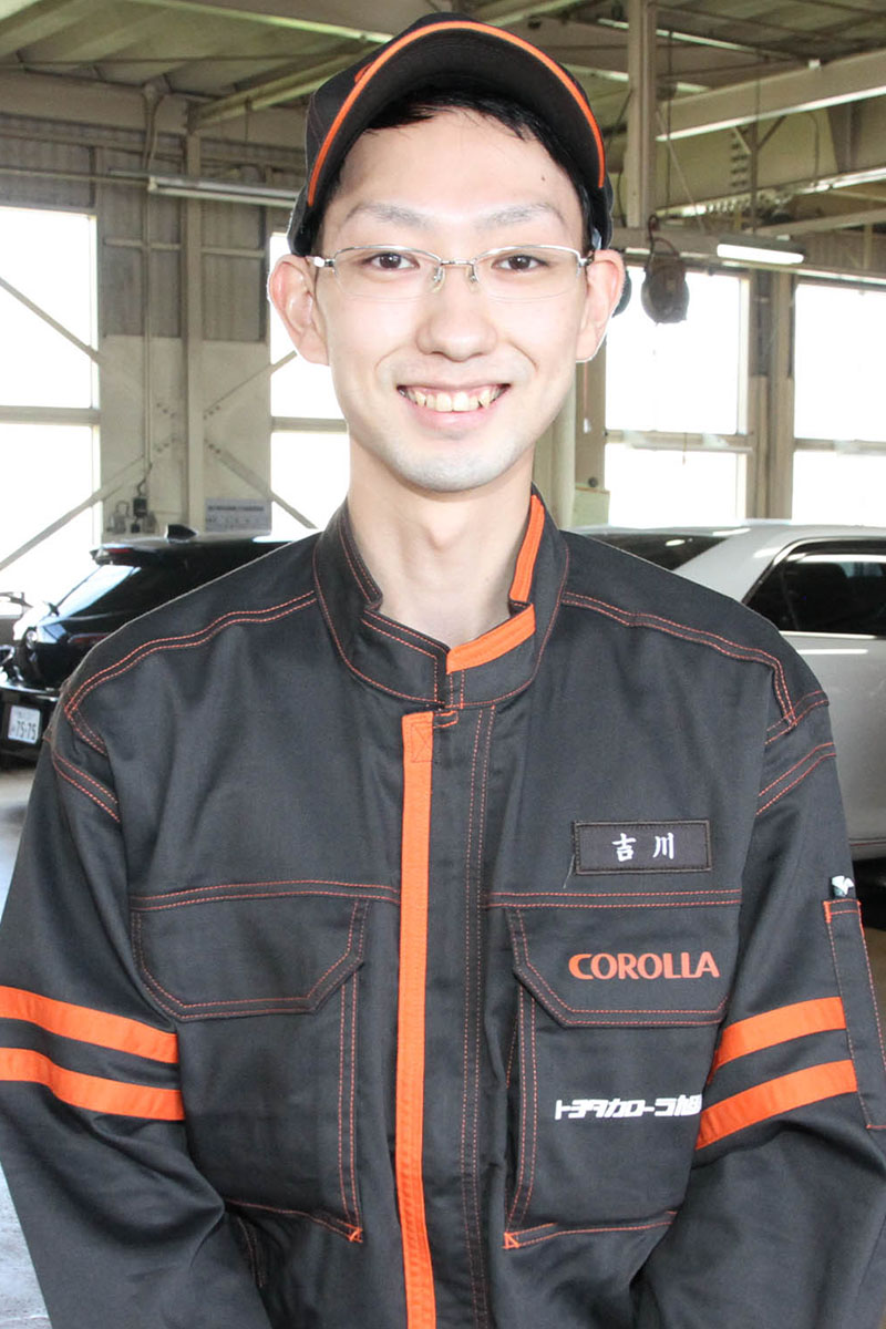 就職先として当社、トヨタカローラ旭川を選んだのは、会社見学などを通じて「社内の雰囲気が良い」と感じたからです。体験入社では、工場での作業も経験させてもらったのですが、そのとき社員の皆さんの雰囲気の良さに魅力を感じました。やはり仕事を続けていくためには、職場環境は大事なことだと思います。