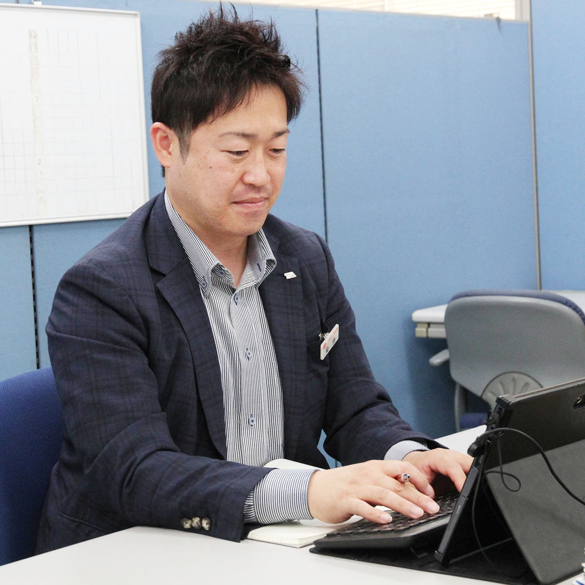 - 今やトップセールスに仲間入りし、後輩の育成にも関わる。コミュケーションの大切さを伝えながらアドバイスを送る。